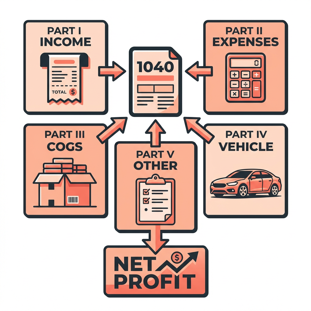 Schedule C is the tax form that determines how much you owe—and how much you save. It's the foundation of your entire tax return as a self-employed business owner. Yet most online guides skim over the details, leaving you guessing at what goes where.
