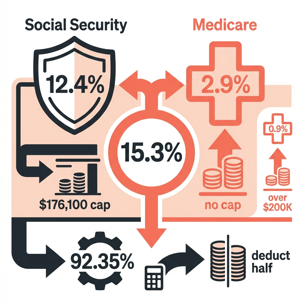 Self-employment tax is the single biggest surprise for people transitioning from W-2 employment to working for themselves. When I started Jupid, the 15.3% rate hit differently than I expected — it's calculated before income tax, and unlike income tax, there's no standard deduction to reduce it.