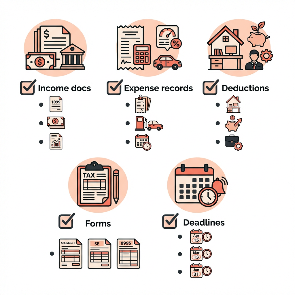 Tax preparation for small business owners is 80% organization and 20% actual filing. The filing itself is mechanical — put the right number on the right line. The hard part is gathering, verifying, and organizing everything before you start.